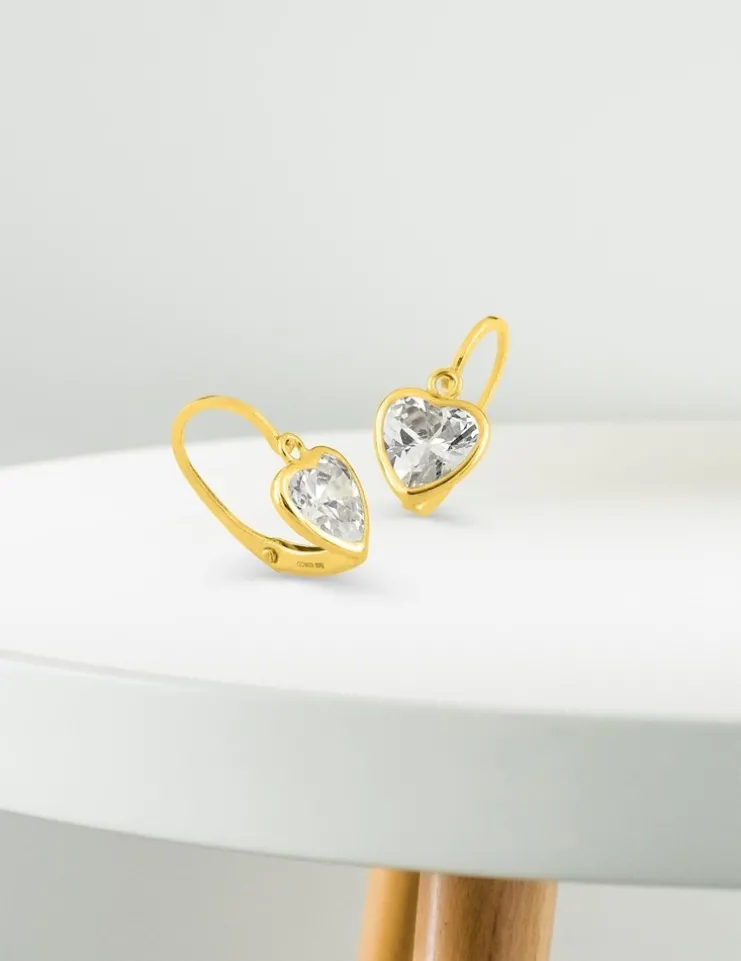 Ces boucles d’oreilles dormeuses en or jaune 375‰ (9 carats) se composent d’un oxyde de zirconium en forme de cœur bordé d’or. Ces boucles d’oreilles ont un poids moyen d’or de 0,40 g.Des boucles d’oreilles au design indémodable pour offrir et faire plaisir.