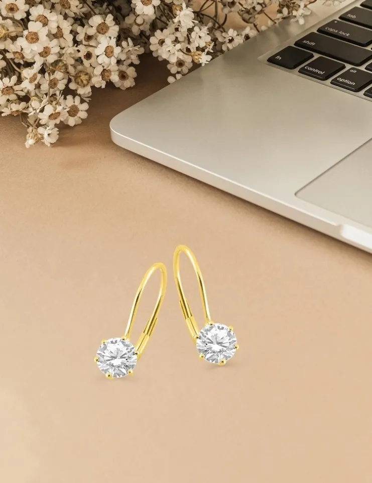 Boucles d'oreilles dormeuses en or jaune 375‰ et oxyde de zirconium SO OR
