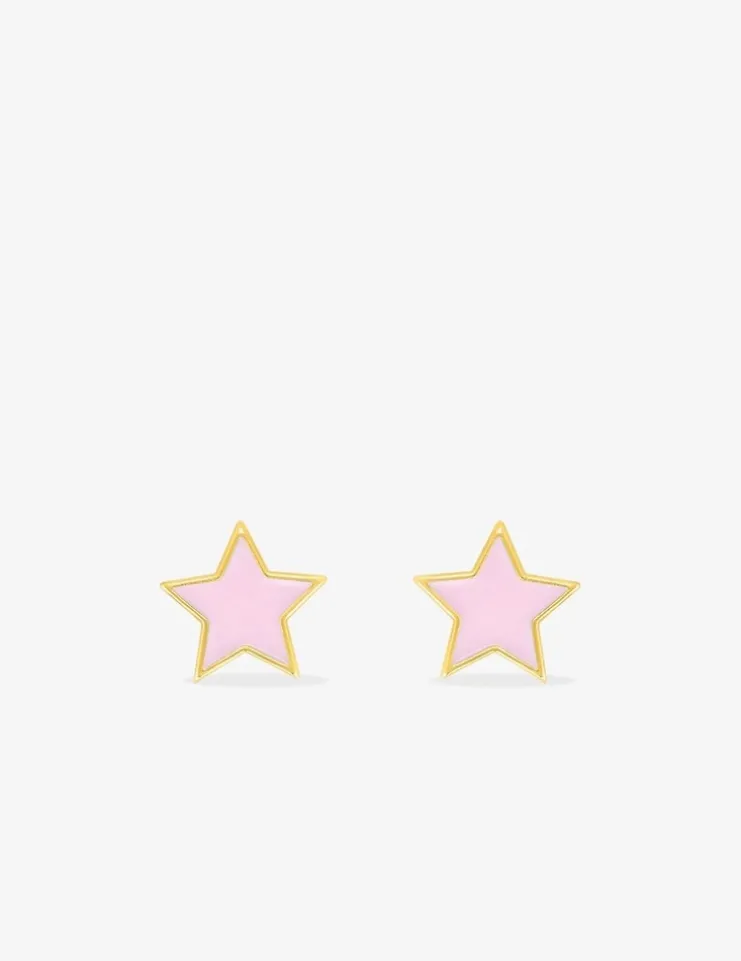 Boucles d'oreilles étoile rose or jaune 750‰ et laque fermoir vis SO OR