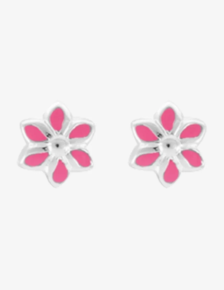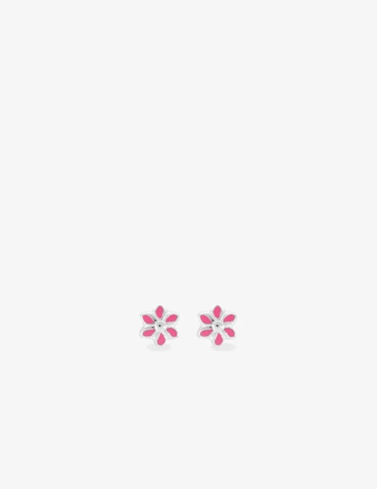 Boucles d'oreilles fleurs argent 925 ‰ laque rose SO OR