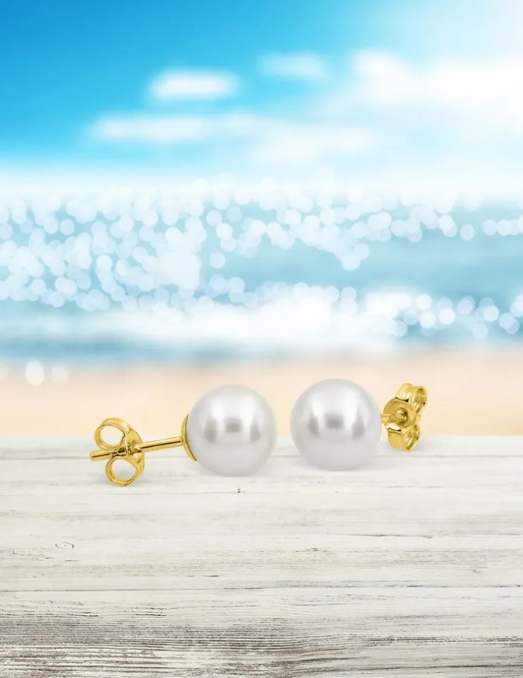Boutons d’oreilles perle de culture d’eau douce blanche de 7 mm de diamètre montée sur une tige en or jaune 375‰ (9 carats). Ces boucles d’oreilles ont un poids moyen de 0,35 g. Système de fermeture avec « poussettes belges ».Ces boucles d’oreilles perles font partie des indispensables de votre garde-robe. À porter seules pour un esprit chic ou accompagnées d’autres boucles d’oreilles pour un effet plus tendance, ces boucles sauront accompagner toutes vos tenues.