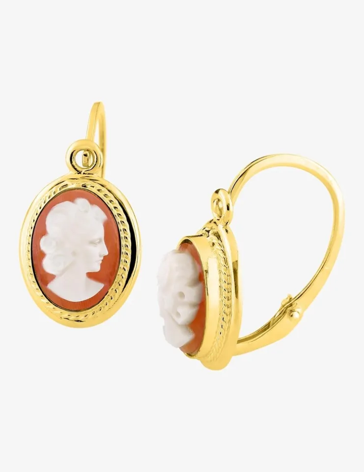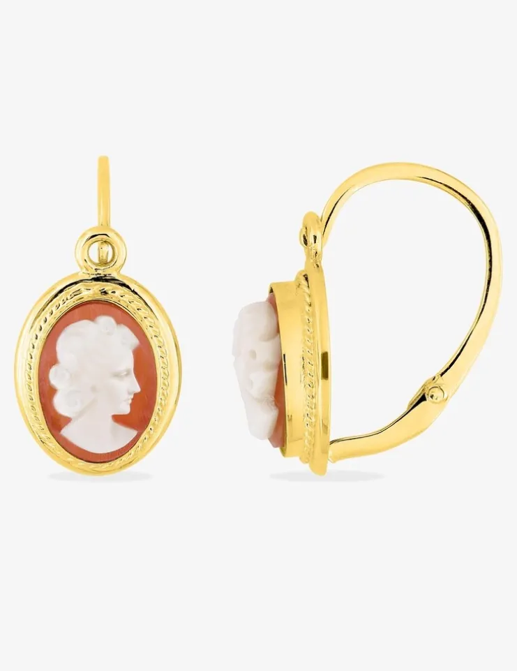 Boucles d'oreilles or jaune 750‰ et camée SO OR