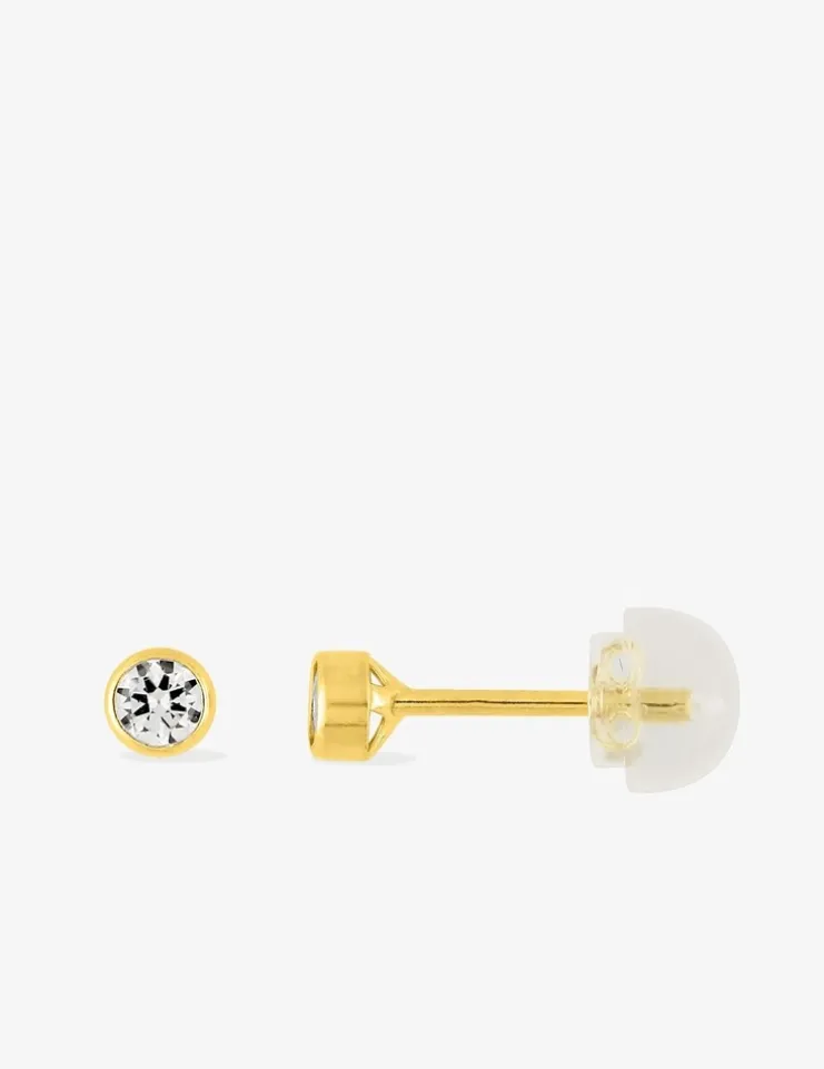 Boucles d'oreilles or jaune 750 ‰, oxyde de zirconium 3 mm serti clos SO OR
