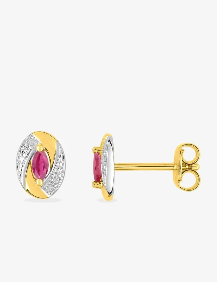 Boucles d'oreilles ovale plaqué or, rhodium et oxyde de zirconium rouge SO OR