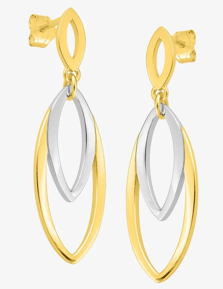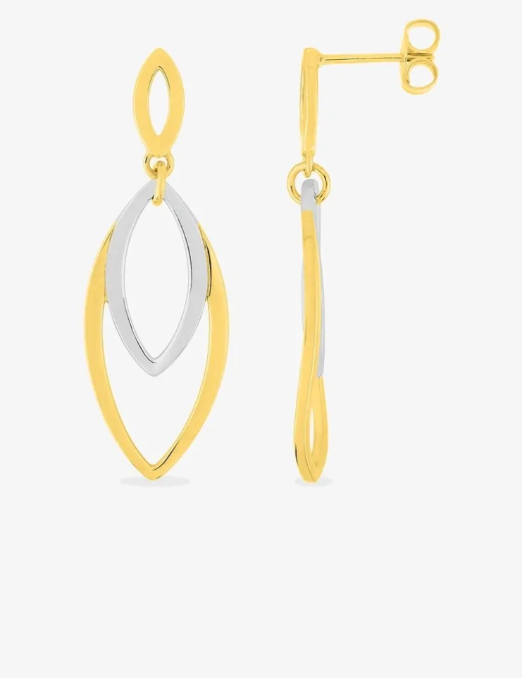 Boucles d'oreilles pendantes feuille bicolore losange plaqué or et rhodium SO OR