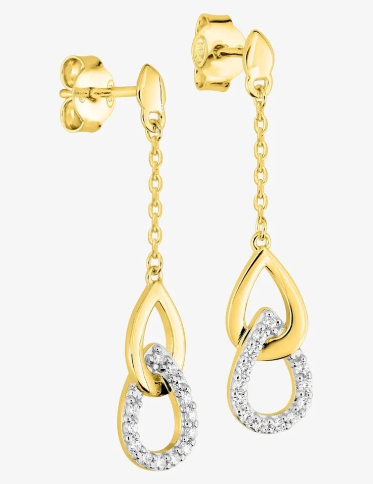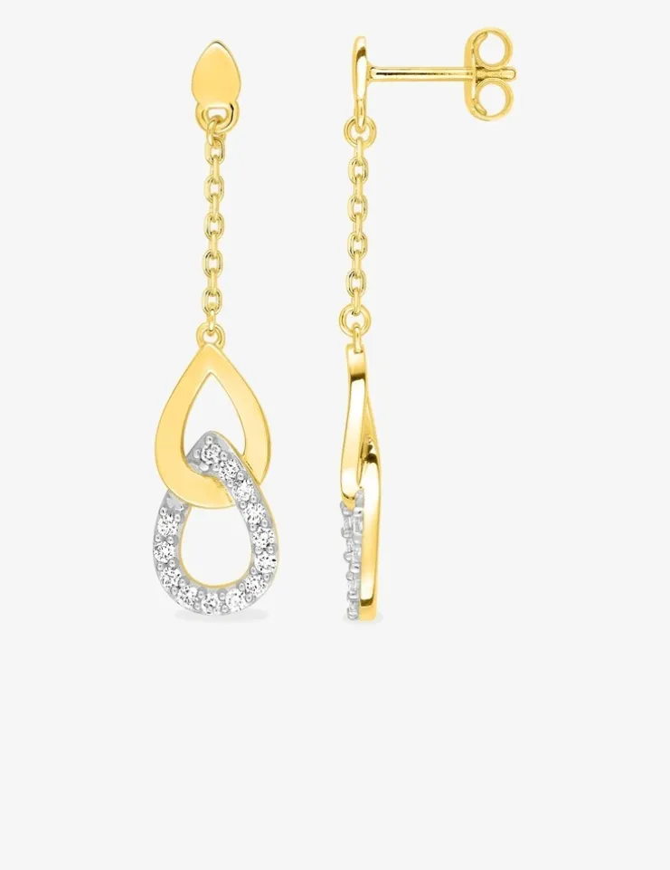 Boucles d'oreilles pendantes gouttes plaqué or, oxydes de zirconium, rhodium SO OR