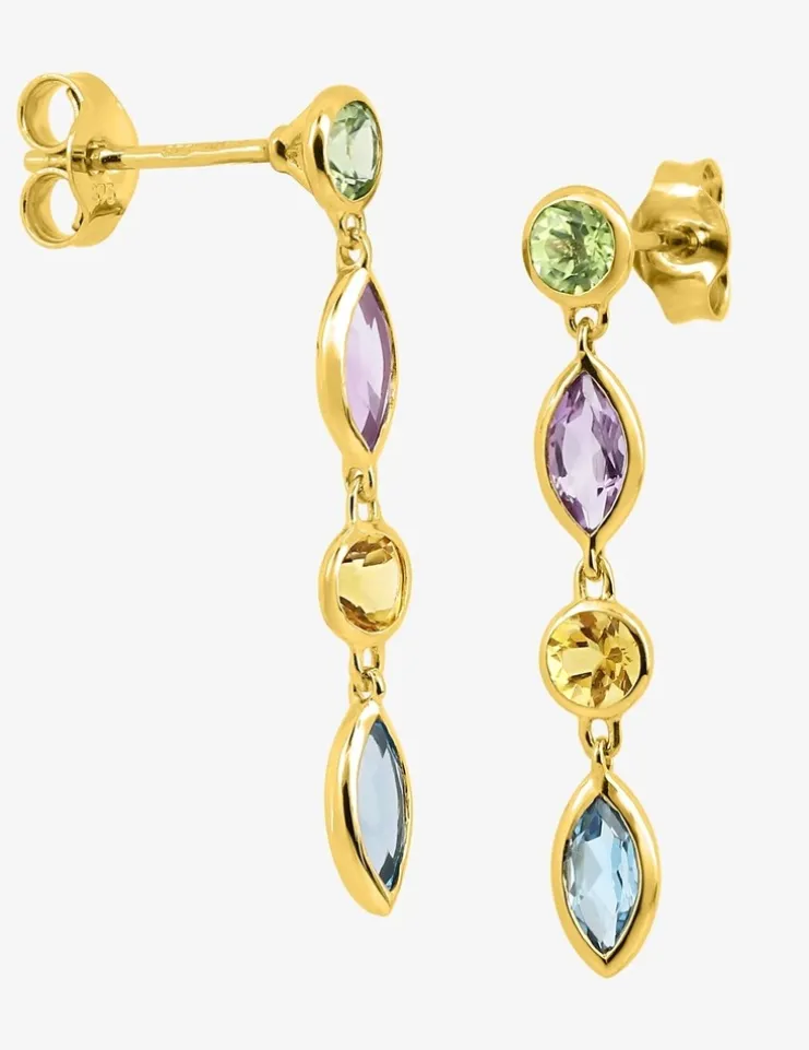 Boucles d'oreilles pendantes multi-pierres fines en or 375‰ SO OR