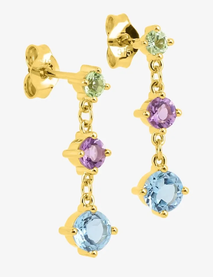 Boucles d'oreilles pendantes or 375 ‰ jaune avec topaze, améthyste et péridot SO OR