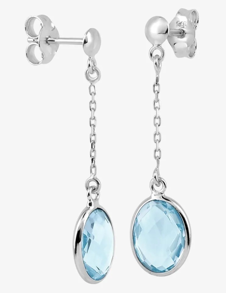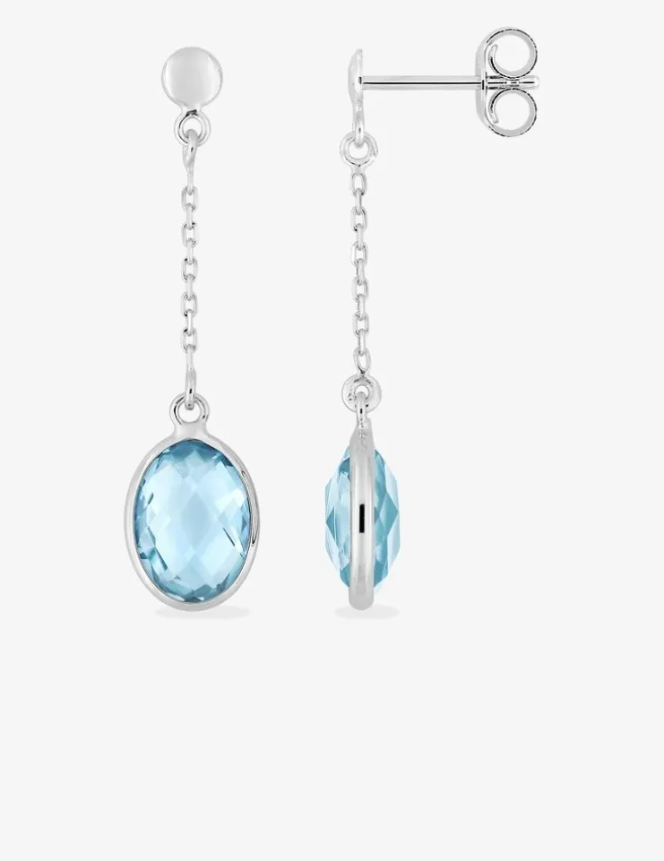 Boucles d'oreilles pendantes or blanc 375 ‰, topaze bleue traitée SO OR