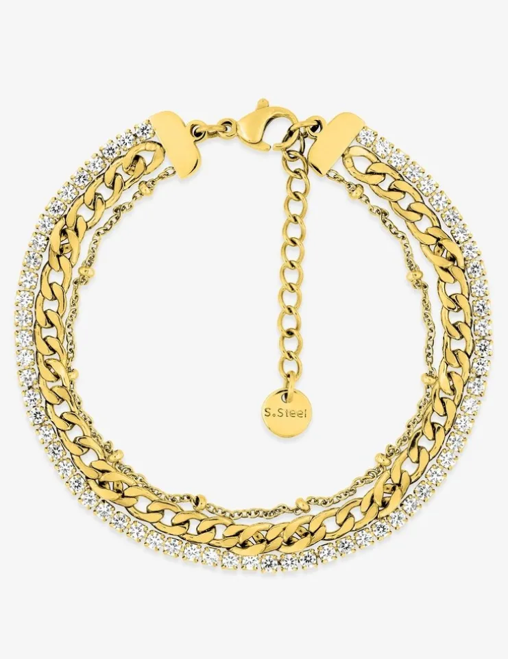 Bracelet acier doré et oxydes de zirconium SO OR