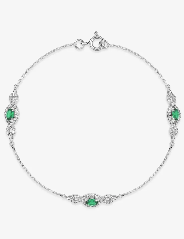 Bracelet argent 925 ‰ rhodié avec oxydes de zirconium verts et blancs SO OR