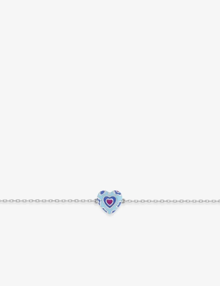 Bracelet argent 925 ‰ rhodié et pendentif cœur avec laque bleue et rose SO OR
