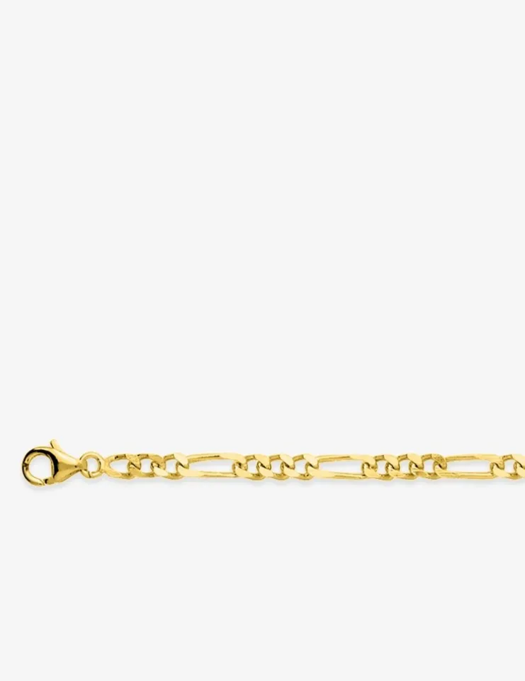 Ce bracelet indémodable et facile à porter au quotidien est fait d’une chaîne à la maille alternée 1+3 en plaqué or. Il mesure 18 cm pour 3 mm de largeur et le fermoir est un fermoir mousqueton.