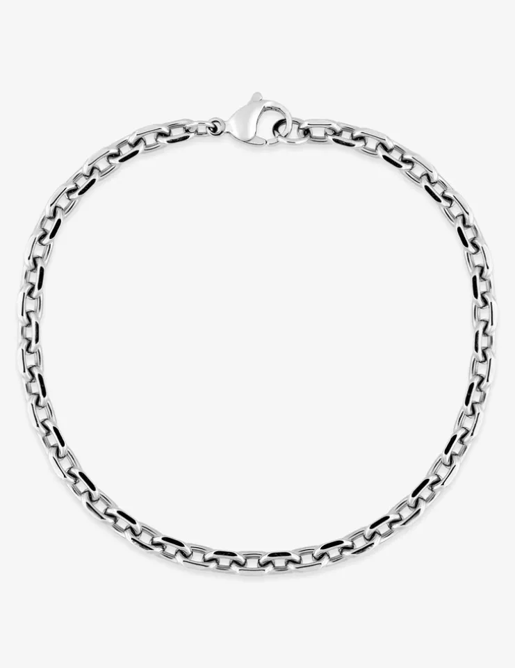Optez pour ce bracelet simple et incontournable en acier. Il est doté d’une maille forçat diamanté de 3 mm de largeur et d’un fermoir mousqueton. Sa longueur est de 21 cm.