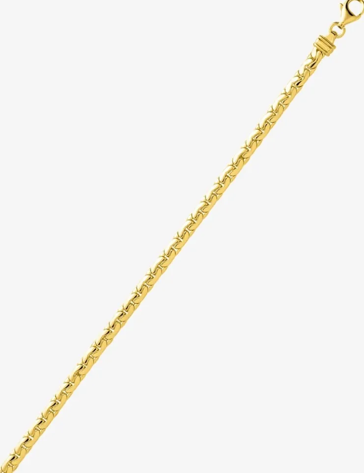 Ce bracelet à la maille haricot est fait en plaqué or et possède un fermoir mousqueton. Il mesure 18 cm de longueur et 3 mm de largeur. Un classique qui peut facilement être porté au quotidien.