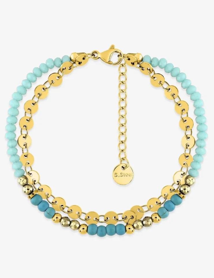 Bracelet chaîne acier doré et turquoises synthétiques SO OR