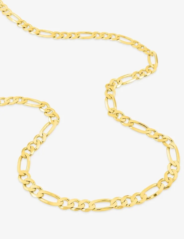 Chaine en or 375 ‰ (9 carats) avec maille figaro. Disponible de 16 cm à 80 cm, cette chaine peut se porter en bracelet ou en collier. Sa maille figaro apporte de l’originalité et une touche d’élégance à vos tenues au quotidien. Ce bijou affiche un poids d’or moyen de 7,20 g pour une mesure standard de 18cm. Sa fermeture sécurisée par un fermoir mousqueton assure un maintien sûr et confortable.