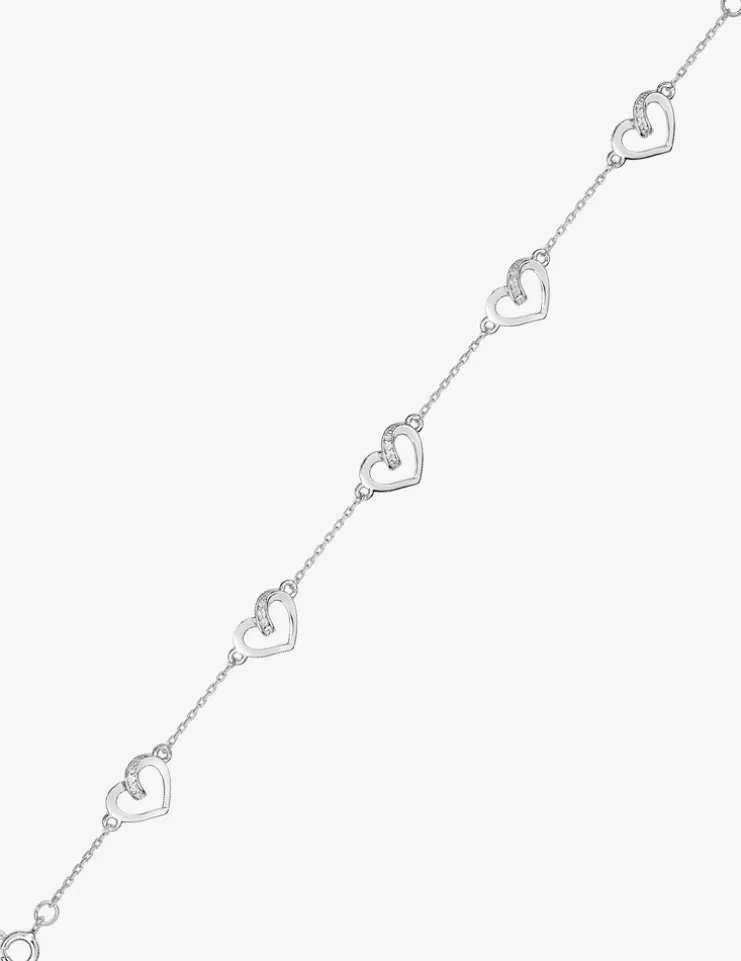 Bracelet cœurs oxydes de zirconium blancs en argent 925 ‰ rhodié 18 cm SO OR