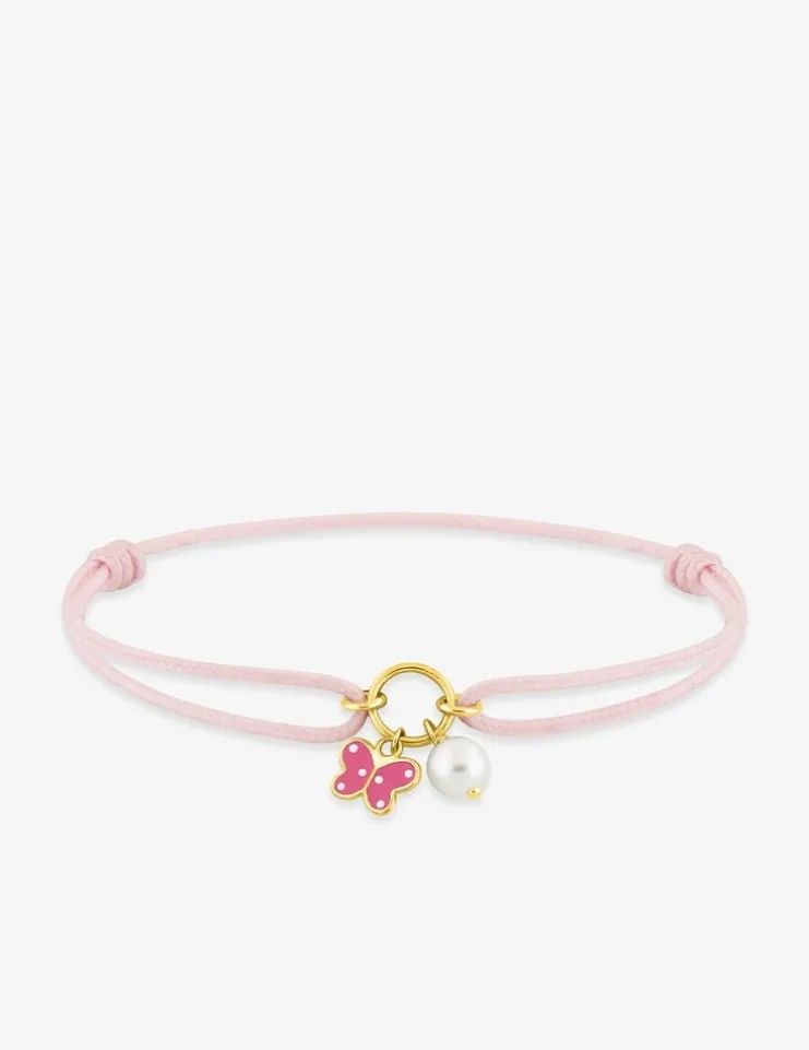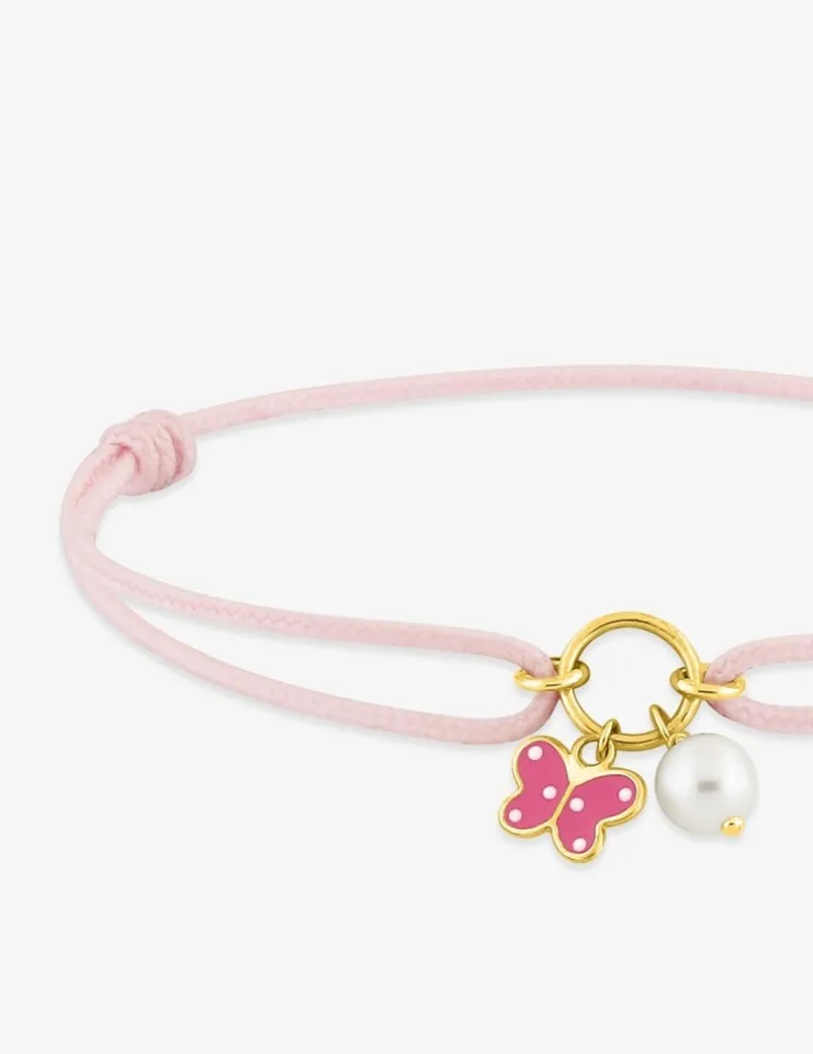 Bracelet cordon rose papillon or jaune 375‰ et perle de culture d'eau douce 4 mm SO OR