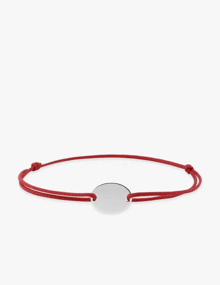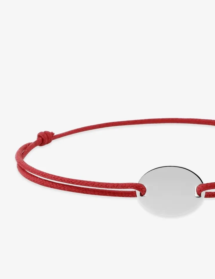 Bracelet cordon rouge jeton argent rhodié 925 ‰ SO OR