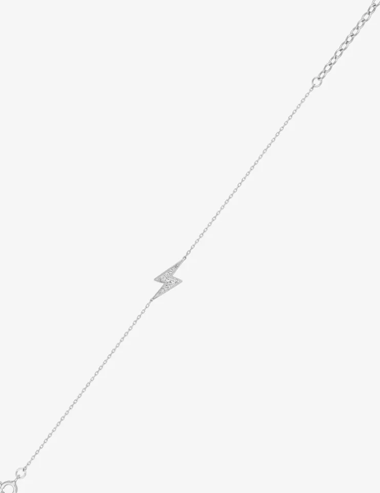 Optez pour ce bracelet au design électrique. Fait en argent 925‰ rhodié, il se compose d’une chaîne forçat de 16 cm plus 3 cm de chaîne de rappel, d’un motif d’éclair serti d’oxydes de zirconium et d’un fermoir anneau ressort.
