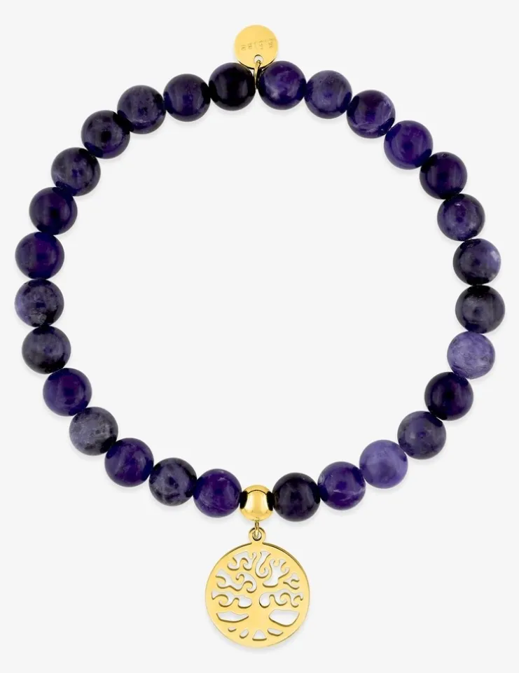 Bracelet élastique arbre de vie acier doré et sodalites SO OR