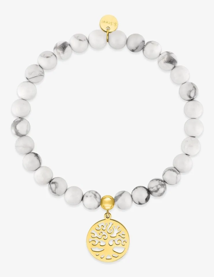 Bracelet élastique arbre de vie acier doré et turquoises blanches SO OR