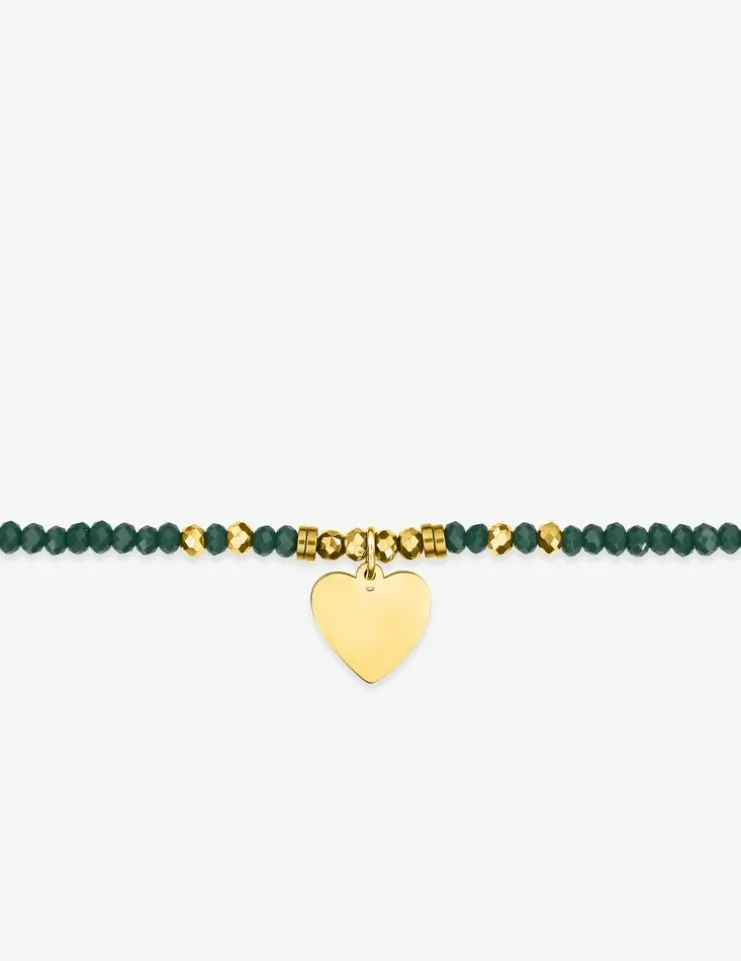 Bracelet élastique cristal turquoise et motif cœur acier doré SO OR