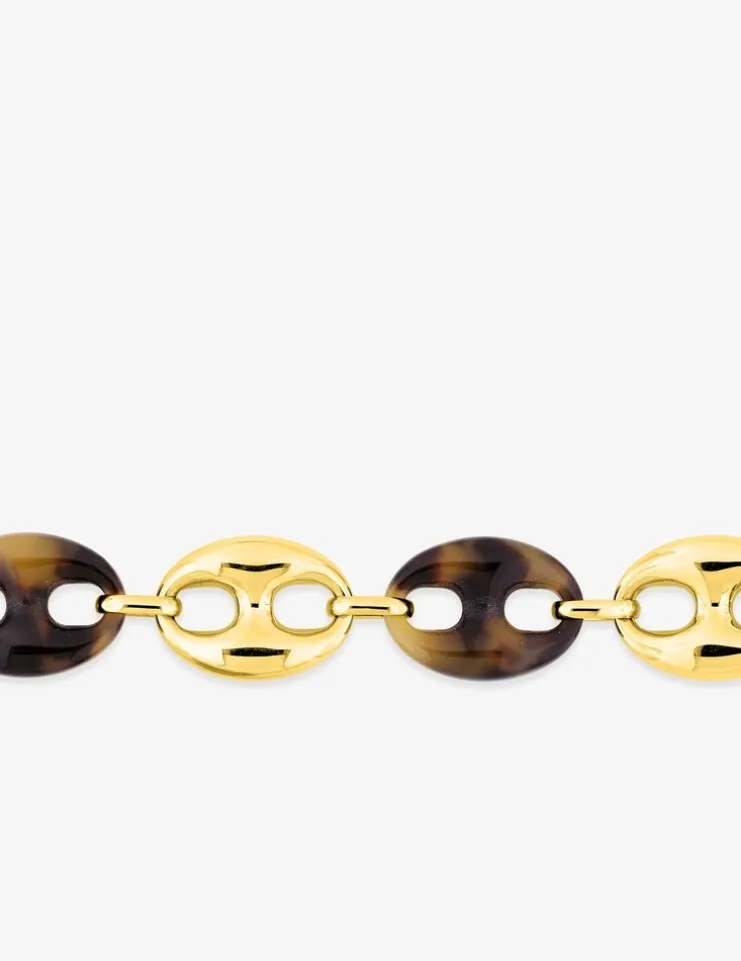 Ce bracelet en acier doré captive par son design original qui réinvente le style chaîne grain de café avec une touche d’innovation. L’alternance harmonieuse entre les maillons métalliques dorés et les éléments en acétate synthétique marron crée un contraste saisissant qui ne manquera pas d’attirer les regards. Ajustable grâce à sa rallonge de 5 cm, ce bracelet de 16 cm s’adapte parfaitement à votre poignet, tandis que son fermoir mousqueton assure un maintien fiable. Un accessoire à la fois élégant et tendance qui apportera une dimension affirmée et chaleureuse à toutes vos tenues.
