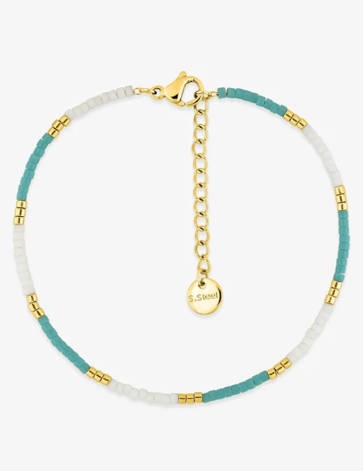 Ce bracelet fantaisie allie la beauté de l’acier doré aux éclats des cristaux blancs, agrémentés de jolis détails bleus qui lui confèrent une touche colorée unique. Ajustable grâce à sa longueur de 16 cm et sa rallonge de 3 cm, ce bijou léger de 1,20 g s’adapte parfaitement à votre poignet. Son fermoir mousqueton pratique vous permet de le mettre et de l’enlever facilement, pour accessoiriser vos tenues au quotidien avec élégance et originalité.