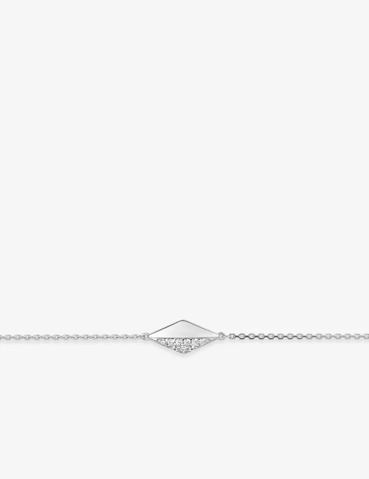 Adoptez ce bracelet plein d’élégance en argent 925‰ rhodié.Il est accompagné d’un motif en forme de losange. La moitié de celui-ci est serti d’oxydes de zirconium.Le bracelet est soutenu par une chaîne forçat de 16 cm avec 3 cm de chaîne de rappel. Il se ferme via un anneau ressort.Un magnifique bracelet que vous pourrez porter quotidiennement.