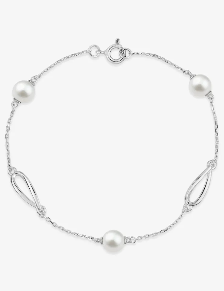 Bracelet en argent 925 ‰ rhodié, perles d'imitation blanches SO OR