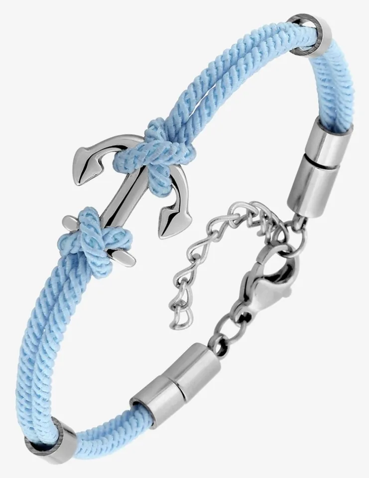 Craquez pour ce bracelet avec son cordon en nylon bleu. Il est accompagné d’une ancre marine en acier. Sa longueur est de 14 cm avec 3 cm de chaîne de rappel. Il se ferme à l’aide d’un fermoir de type mousqueton.Un bracelet qui fera voyager votre enfant.