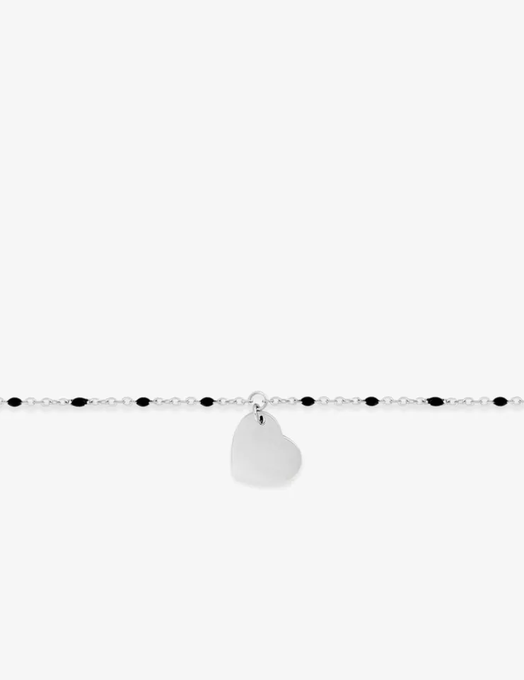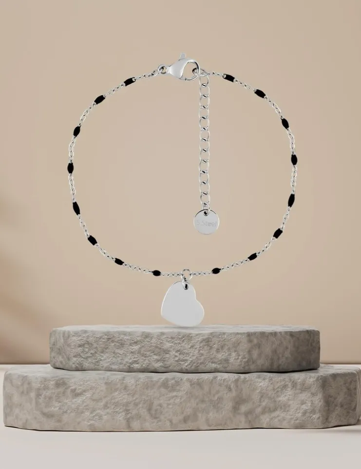 Bracelet fantaisie noir et acier, breloque cœur SO OR