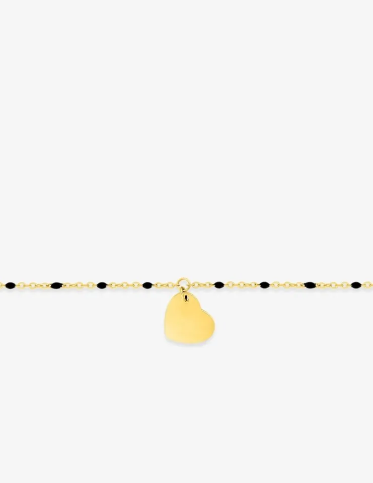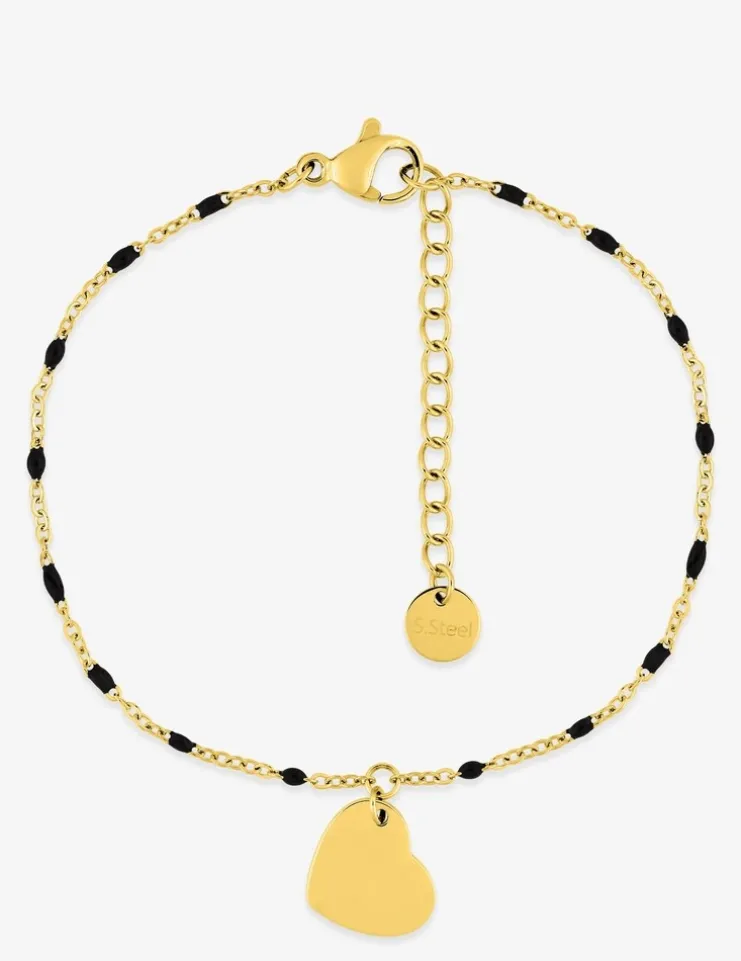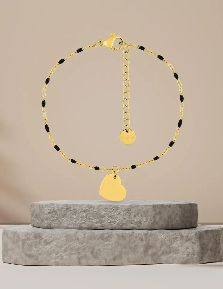 Bracelet fantaisie noir et acier doré, breloque cœur SO OR