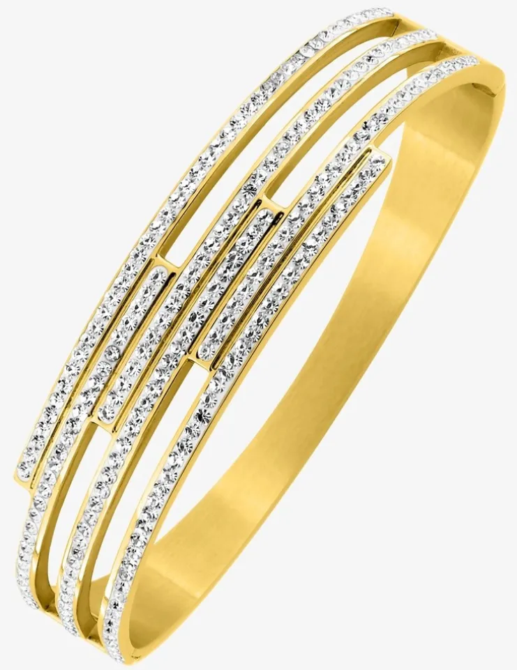 Bracelet jonc acier doré avec des cristaux blancs synthétiques SO OR