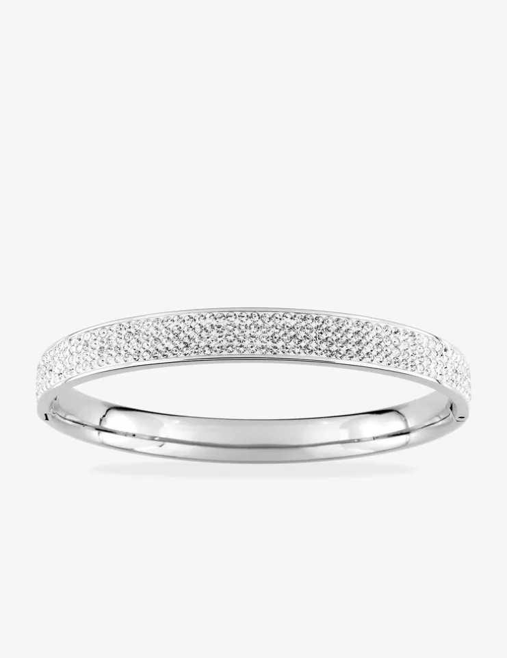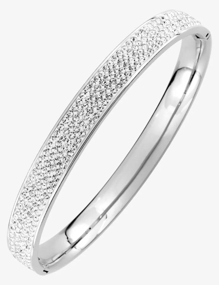 Bracelet jonc en acier, magnifiquement orné de cristaux blancs étincelants. Avec des dimensions de 60×50 mm, ce bijou présente un poids total de 26,69 g. Ce bracelet élégant et sophistiqué est conçu pour ajouter une touche de brillance et de raffinement à toutes vos tenues.