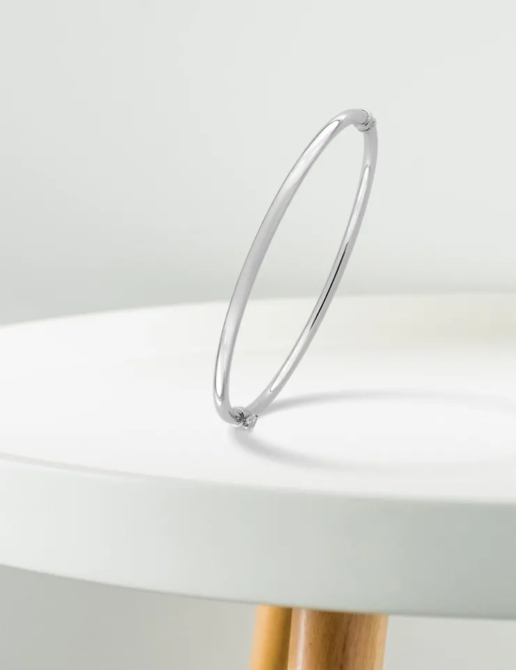Ce bracelet jonc ouvrant est en or blanc 375 ‰ (9 carats). Il se compose d’un fil rond creux de 3 mm, avec un système de charnières et un fermoir embout avec huit de sécurité. Ce bracelet jonc a un poids moyen d’or de 3,30 g, sa dimension est une taille unique de 50×60 mm. Ce bracelet jonc ouvrant en or blanc est un grand classique, qui vous accompagnera au quotidien, il apportera une touche d’élégance à toutes vos tenues.