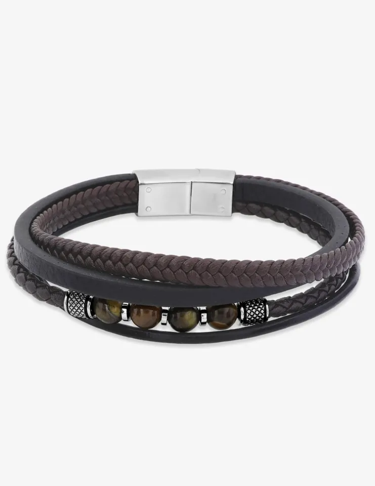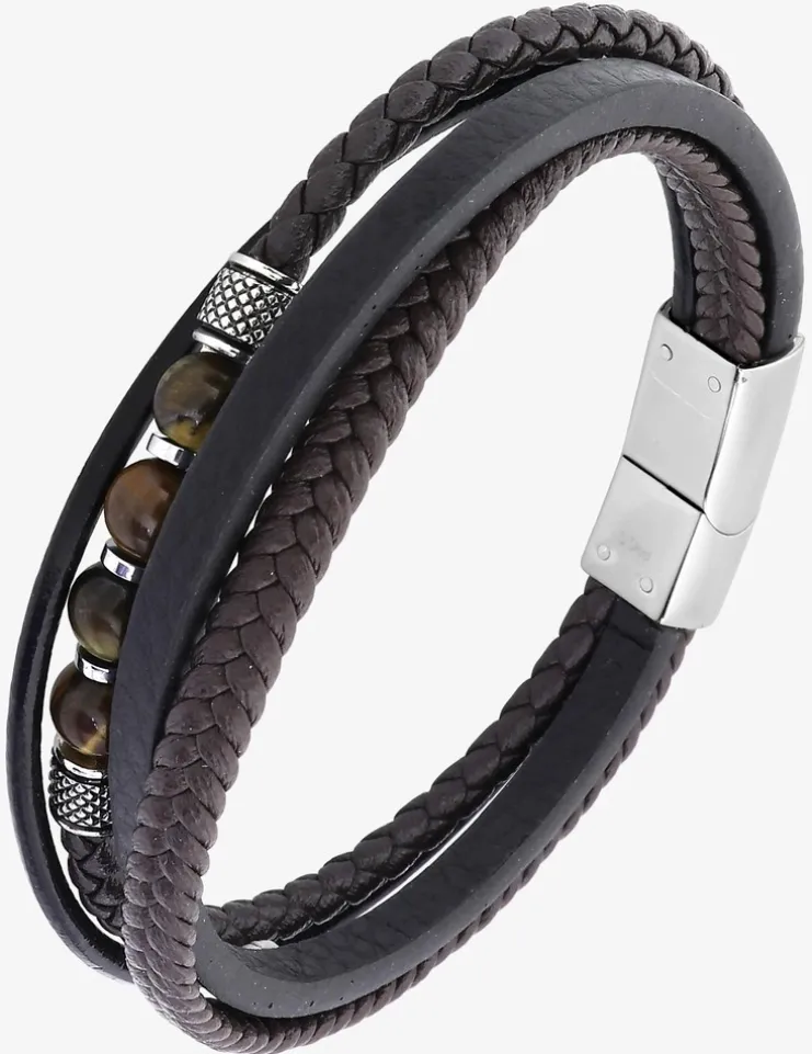Ce bracelet pour homme associe harmonieusement matière synthétique marron, perles d’œil de tigre et détails en acier gris pour créer un effet multi-bracelets en une seule pièce. Avec ses 20,5 cm de longueur, 10 mm de largeur et son poids de 5,50 g, il apporte une présence affirmée au poignet. Un accessoire qui devient naturellement le point focal de votre style, alliant force et élégance pour l’homme au caractère assuré.