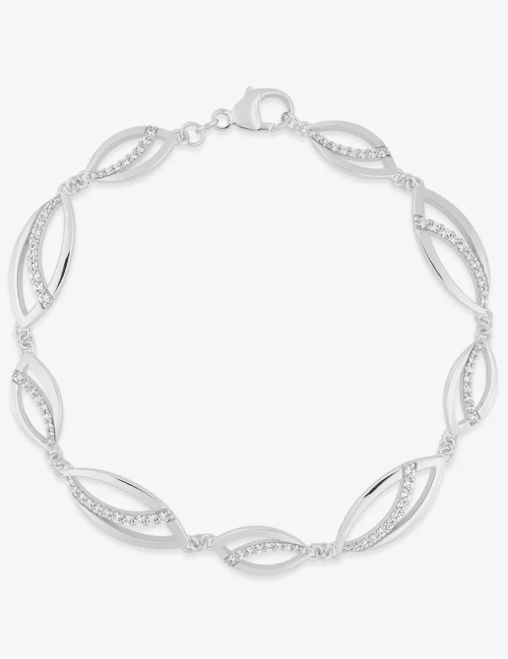 Craquez pour ce bracelet en argent 925‰ rhodié. Il est accompagné de motifs de forme ovale qui sont traversés par des oxydes de zirconium. Le bracelet se ferme via un mousqueton. Il est d’une longueur de 19 cm.Un bracelet que vous pourrez porter tous les jours.