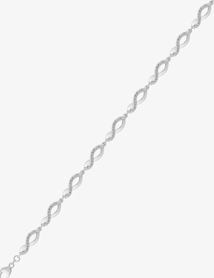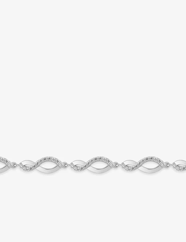 De délicates vagues en argent 925‰ rhodié s’entremêlent avec des vagues serties d’oxydes de zirconium pour faire de ce bracelet un bijou scintillant qui sublimera votre poignet. Il mesure 19 cm et possède un fermoir mousqueton.