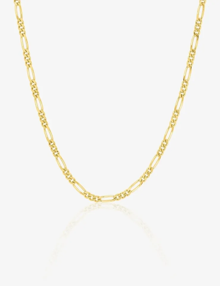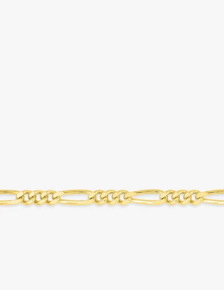 Cette chaîne alternée 1+3 en or jaune 750‰ (18 carats) possède des maillons de 1,7 mm de largeur. Le fermoir est un anneau ressort et cette chaîne pèse 1,90 g pour 18 cm (bracelet) et 4,30 g pour 45 cm (collier).