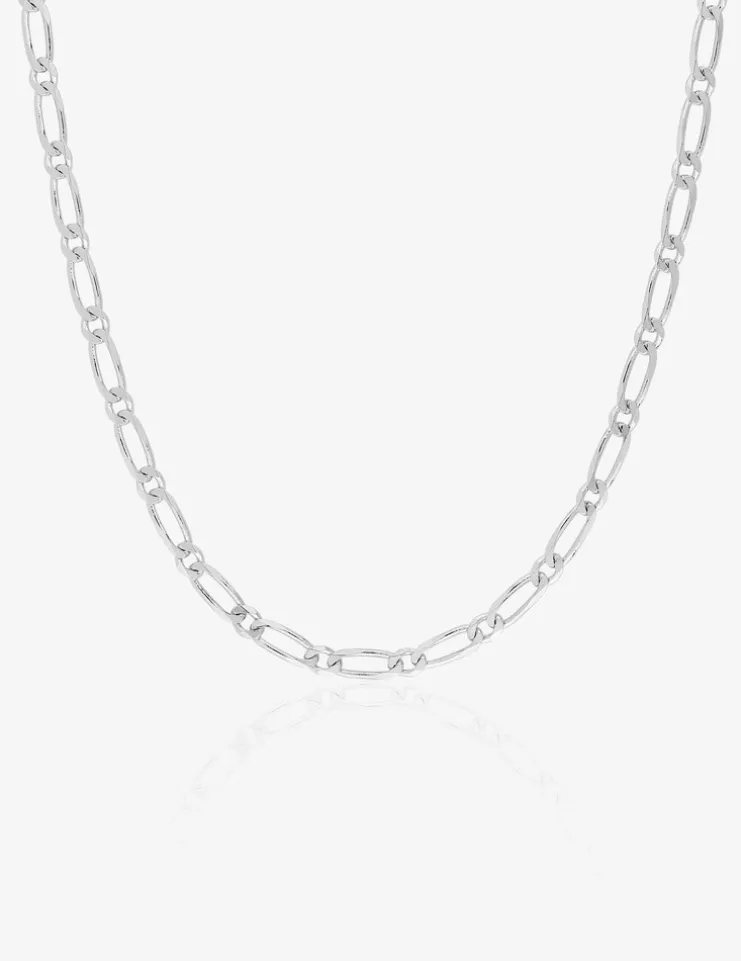 Cette chaîne alternée 1+1 ultra-plate en or blanc 375‰ (9 carats) possède des maillons de 2,5 mm de largeur. Le fermoir est un anneau ressort et cette chaîne pèse 4,25 g pour 45 cm.