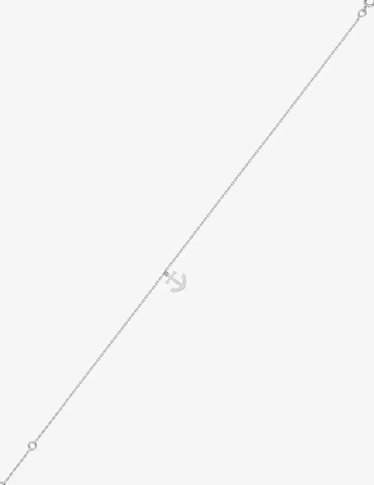Ce bracelet de cheville en argent 925‰ rhodié est décoré d’une breloque en forme d’ancre de bateau. Il mesure 24 cm plus 2 cm de chaîne de rappel et possède un fermoir de type anneau ressort. Un bijou parfait pour des vacances à l’air marin.