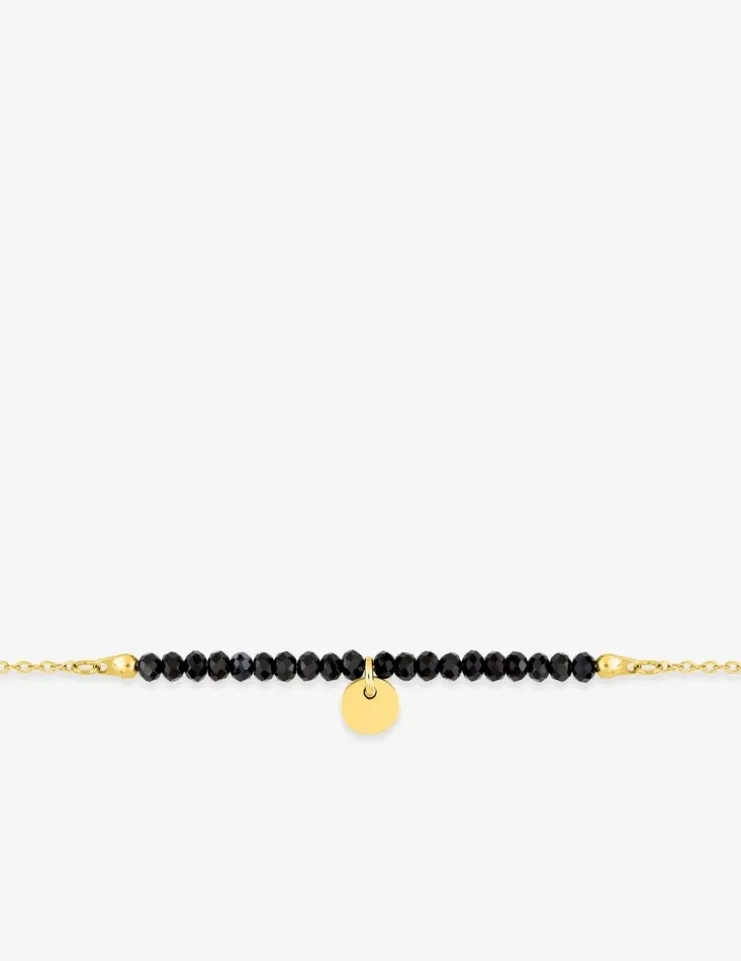 Chaîne de cheville cristal noir synthétique et jeton acier doré SO OR