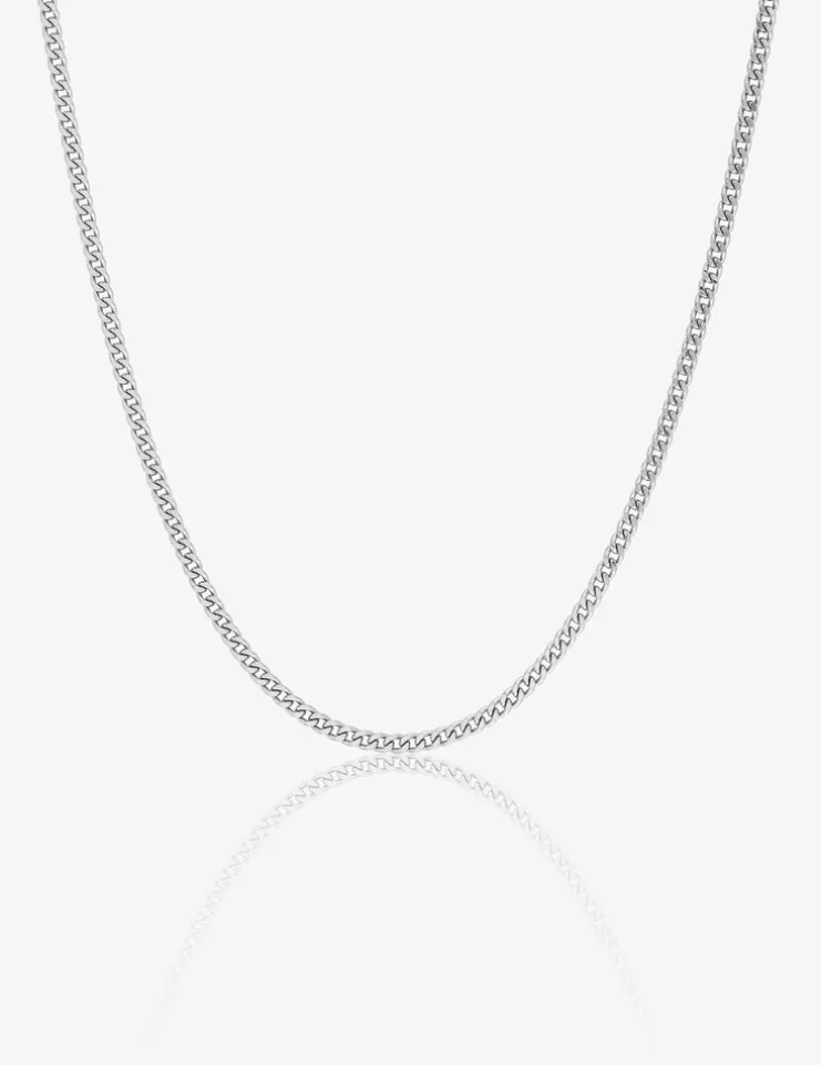 Cette chaîne en maille gourmette est en or blanc 375 ‰ (9 carats) rhodié. Ce bijou a un poids moyen d’or de 3,15 g pour une longueur de 50 cm, et il est équipé d’un fermoir anneau ressort.Cette somptueuse chaîne accompagnera avec raffinement votre cou.