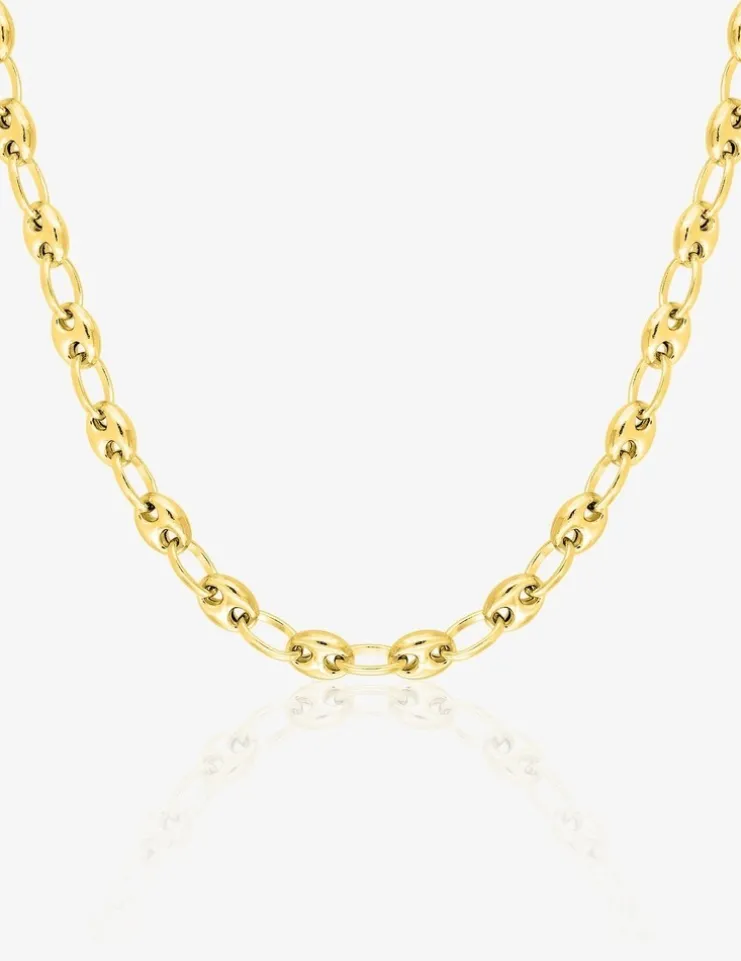 Adoptez cette chaîne en maille grain de café en or 750‰ (18 carats).Cette chaîne dispose d’une maille creuse grain de café de 3,5 mm de largeur. Elle se ferme via un fermoir de type mousqueton. Le poids d’or moyen de cette chaîne est de 12,30 g pour 45 cm.Un bijou classique et élégant.