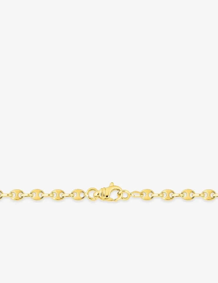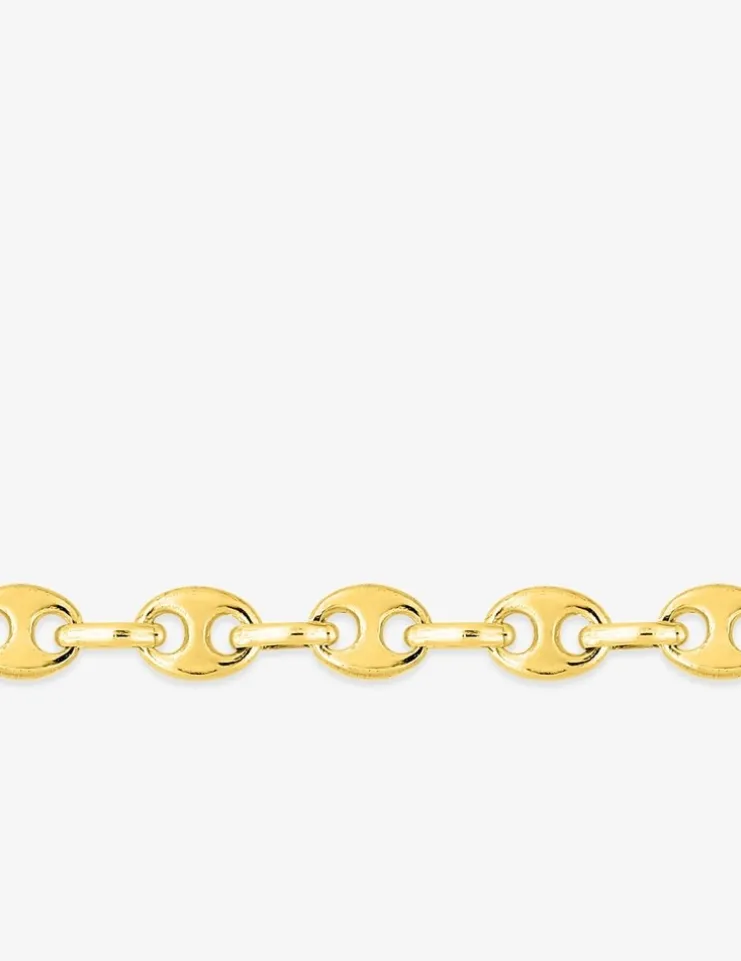 Chaîne massive grain de café en or jaune 750 ‰ (18 carats) d’une épaisseur de 3,2 mm, avec un poids moyen d’or de 4,40 g pour une longueur de 18 cm (bracelet) et un poids de 11,50 g pour une longueur de 50 cm (collier), le fermoir est un mousqueton. Un superbe chaîne massive à porter au quotidien.