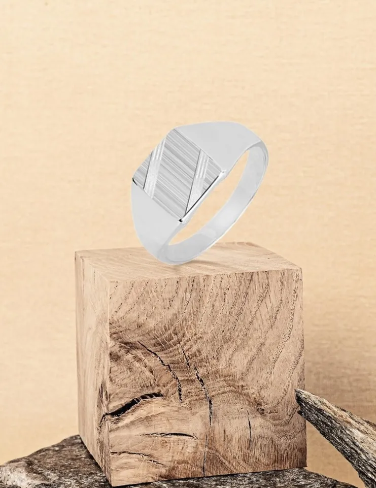 Chevalière Argent 925 ‰. Esprit géométrique pour cette chevalière au plateau carré de dimension 9×9 mm.