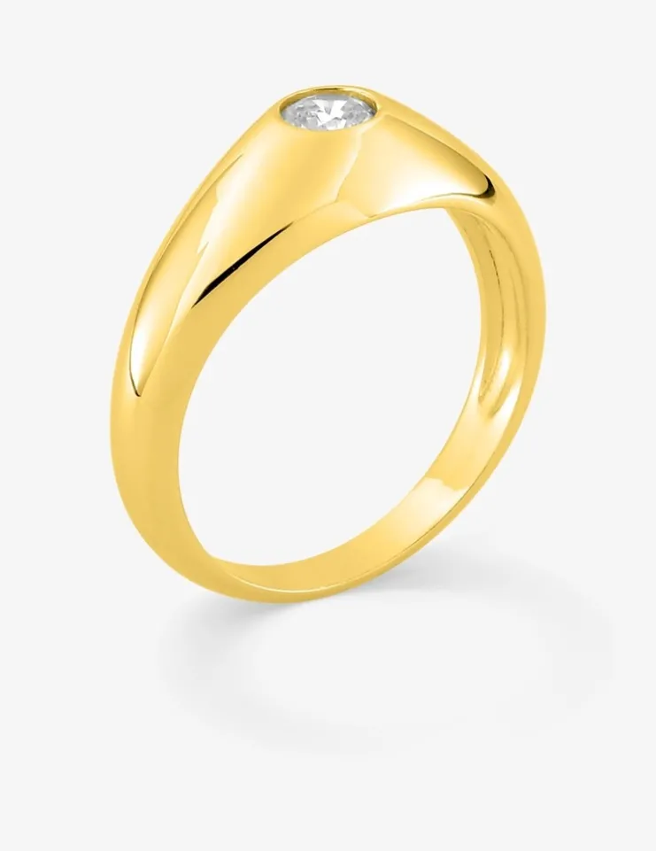 Chevalière jonc anglais plaqué or et oxyde de zirconium SO OR